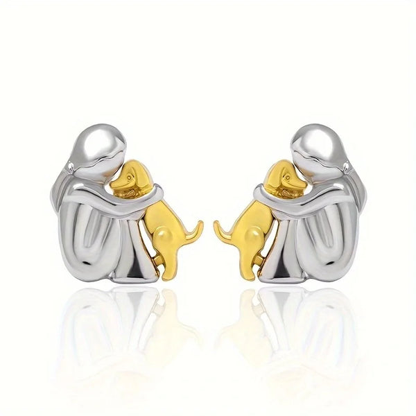 Fall in love with these beautiful women's and dog earrings with their tender and emotional design. Each earring depicts a woman's silhouette hugging her dog, a symbol of unconditional love, loyalty, and deep connection.