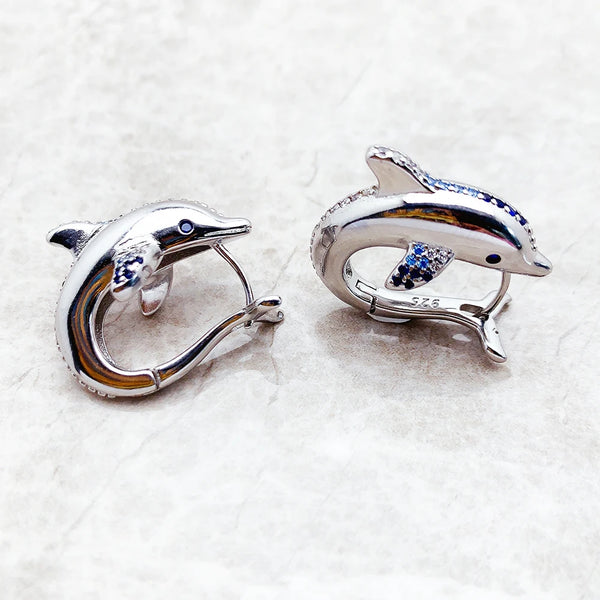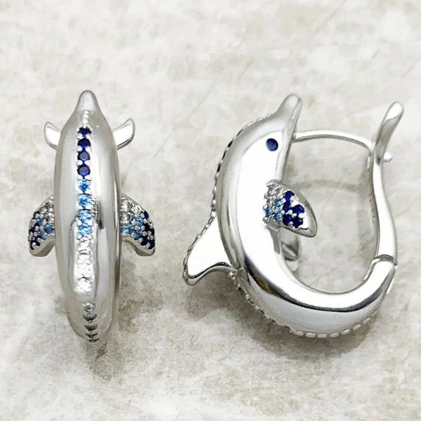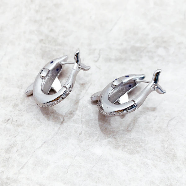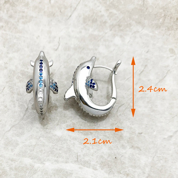 Hoop Earrings,Dolphin,Cute,Fine Jewerly,Women,Lucky,Gift,925 Sterling Silver