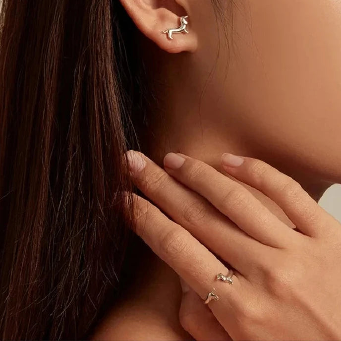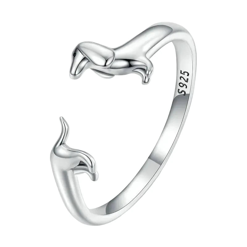 Affichez votre amour des chiens avec la bague Teckel Éternel en argent 925. Son design original représente deux adorables teckels formant un anneau délicatement enroulé autour du doigt. À la fois minimaliste et symbolique, cette bague incarne la fidélité, la tendresse et la complicité.