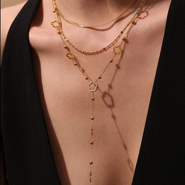 Collier AUREYA – Collier Doré Multi-Rangs à Pendentif Y